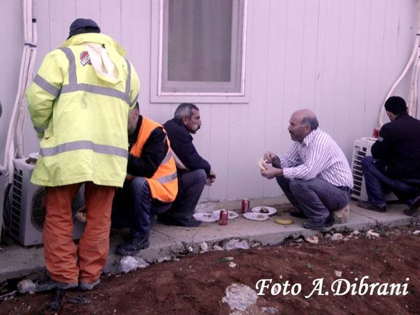 Pamje nga punëtorët shqiptar në kohën e drekës, të firmës Bechtel & Enka duke punuar në kushte të jashtëzakonshme, me një orar të stërzgjatur, nga 320 deri në 350 orë, ndërsa sipas rregullores i kemi 160 orë në muaj theksojnë këta punëtorë të lodhur dhe të molisur nga puna e kësaj dite. Ma tutje shprehet një burrë i shtyrë në moshë me të ardhura mujore deri ne 200 euro në muaj, gjysma po me shkon për udhëtim nga fshati Zhuri i Prizrenit, pa sigurime dhe pa të drejtë reagimi apo ankese, siç ndodhi para disa muajsh, akoma pa u organizua një protestë u shua me presione, shpërndarje dhe largime nga puna, kush i ka bërë këto marifetlleqe nuk guxuan të prononcohen me emër, por thanë se i din qeveria e Thaqit në muajin mars, se kenë e kanë larguar dhe pse i kane larguar nga puna !?… Këta punëtorë deklaruan shumë te dhëna rrëqethëse por u lutën që mos t’i publikojmë emrat e tyre se na hakmerren dhe na largojnë nga puna!