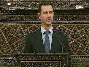 An image grab taken from Syrian state TV shows Syrian President Bashar al-Assad addressing the parliament in Damascus on Sunday.