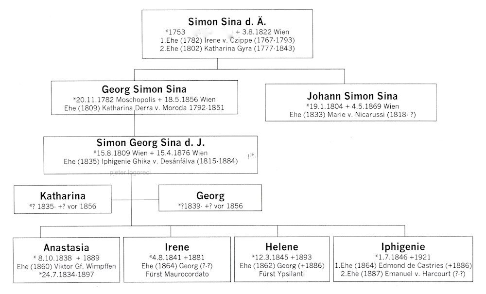 Në mesin e “Patrizëve” më të pasur të Vjenës, qendrës së perandorisë së fuqishme Austro-Hungareze, vendosej edhe familja me origjine nga trevat shqiptare SINA. Historia e dinastisë së kësaj familje fillon me zotëruesin e madh të tokave, finanzuesin dhe ndërtuesin më të rëndësieshëm, ajkën e perandorisë austro – hungareze nën Franc Jozefin I, Freiherr Simon Georg von Sina (1753 – 1822) (1).