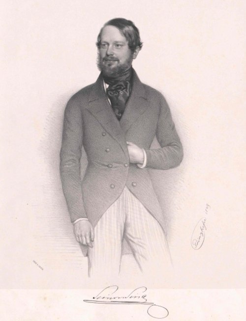 Foto 3: Pjese e nje pikture e vjetit 1862 ku Baroni Gjergj Sina po vendos gurin e pare per ndertimin e ures Kettenbrücke
