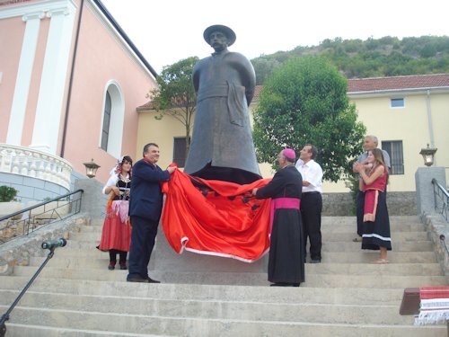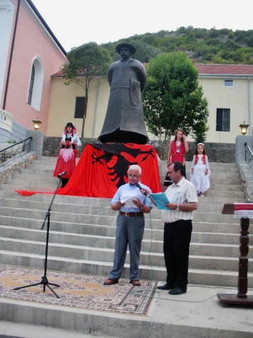 Një çast solemn erdhi kur u zhvillua ceremonia e përurimit të shtatores së bronxit të poetit. Shtatorja e mbështjellë me flamurin kombëtar u zbulua nga Dom Dr. Nikë Ukgjini, Arqipeshkvi Imzot Angjelo Massafra, Ardian Marashi. Fjalën e rastit e mbajti Drejtori i QSA Prof. Ardian Marashi.