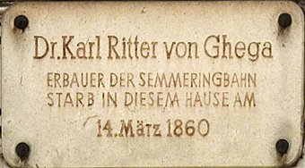 Foto 5: Pllaka përkujtimore në dritaren, ku ka jetuar Karl Ghega, në pallatin Sina