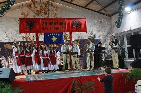 Moderatorët – Marie Zefi-Ukaj dhe Krist Ramaj, ia dhanë fjalën kryetarit të shoqatës “Stublla” dhe “Nënë Tereza”, Z. Pashk Ballabanit, i cili shpalli të hapur festën dhe foli pak për rëndësinë e saj, normalisht duke i porositur të pranishmit, që në asnjë çast të mos e harrojnë vendin e tyre, duke shtuar se jemi krenarë që i përkasim Shqipërisë. Ai, pastaj ia dha fjalën Marjan Gjergjit, i ardhur nga Bergamo, i cili foli për historikun e 28 Nëntorit Shqiptar, të Shqipërisë dhe të Flamurit tonë e të pavarësisë. Gjatë rrëfimit të rrjedhshëm të historisë, Marjani, shpesh është ndërprerë nga duartrokitjet e të pranishmëve.