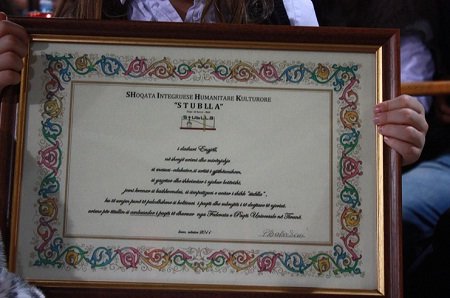 Një pikë speciale ishte organizuar për autorin e këtij reportazhi – Engjëll Koliqin, duke më nderuar si ambasador i paqes, me një mirënjohje speciale, në pergamenë, nga SHIKH “Stublla”, me emrin e vendlindjes sime. Më shumë jam gëzuar për këtë mirënjohje nga njerëzit e vendlindjes, se sa me titullin e ambasadorit që kam marrë në Tiranë. Kjo mirënjohje më është dukur më e ëmbël, edhe për faktin se ishte e nënshkruar nga veterani ynë këtu, humanitari shembullor, Pashk Ballabani.