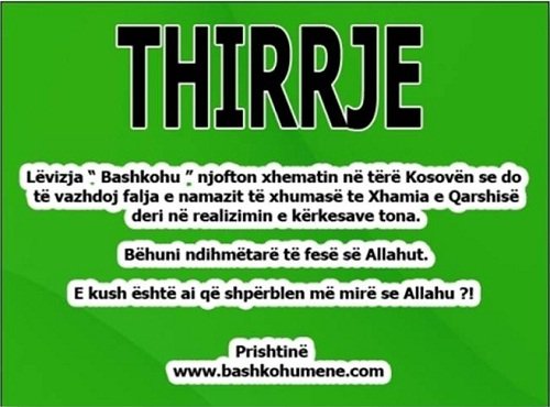 Vëllezër të nderuar, ju bëjmë thirrje që t`i përgjigjeni kësaj ftese dhe në këtë mënyrë t’u bëjmë me dije se të drejtat tona si qytetarë të këtij vendi po shkelen. Në këtë formë të shprehim indinjatën tonë për mungesën e gatishmërisë së institucioneve për të ndarë hapësirën për ndërtimin e xhamisë (Qendrës Islame )”, ka qenë apeli i OJQ’ve, drejtuar besimtarëve islamë për tubimin e së premtes.