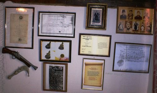 Kati i dytë ka tri dhoma karakteristike druri, por në dhomën e zgjedhur për muze janë të përqëndruara për të kënaqur syrin e vizitorit objektet më të rëndësishme që ka shtëpia. Pasi kundrova me kënaqësi për një kohë të gjatë fantazinë e artin e derdhjes të figurave mbi sipërfaqen e oxhakut karakteristik, vendosa të kaloj një vështim mbi fotografitë, dokumentat dhe stolitë e shumta që mbushnin ambientin.