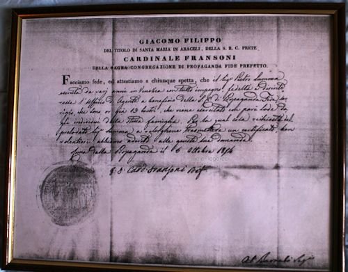 Foto 8. Dokumenti i Propagandës Fide i firmosur nga Kardinal Fransoni për familjen Çeka