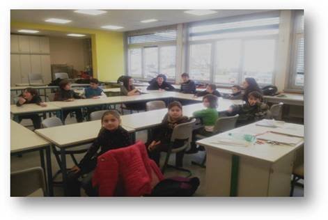Pamje e grupit te nxënësve gjate mësimit. Cikli i ulet në orën e mësimit me mësuesen Aurora Bujupi-Rexhaj.