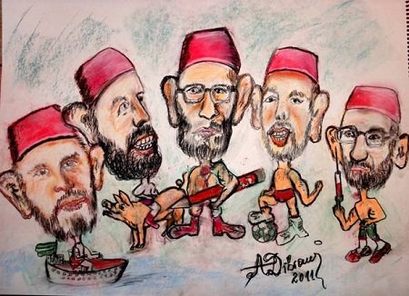 Karikaturë nga autori Asllan Dibrani, majtas Fuad Ramiqi, Shefqet Krasniqi, Rexhep Qosja, Memli Krasniqi dhe Ferid Agani, të deklaruar si myslimanë të Kosovës duke e katandisur vendin me kërcime ndryshim historish, përçarje fetare dhe tradhti ndaj “KOMBIT” me një hipokrizi të imagjinuar në dëmin e popullit shqiptar, duke luajtur me ndjenjat e të varfërve dhe njerëzve të pa vetëdijshëm në momentet dramatike të popullit heroik shqiptar!