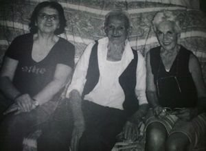 Autoria e librit Maria Rita me të motrën Luçien në takimin e tyre pas shumë vitesh me infermierin nga Puka Halit Mustaf Laçin në moshën 89 vjeçare. Ndërsa në fotot lartë Vittori dhe Rosita.