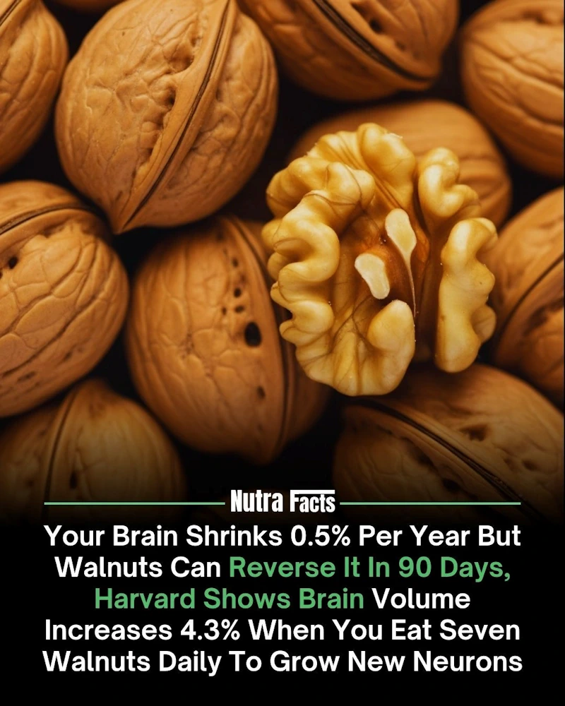 Truri juaj humbet natyrshëm rreth 0.5% të vëllimit të tij çdo vit ndërsa plakeni, por kërkimet e reja tregojnë se kjo rënie nuk është e pakthyeshme. Studimet, përfshirë gjetjet e theksuara nga studiuesit e Harvardit, zbulojnë se të hash vetëm shtatë arra në ditë mund të rrisë vëllimin e trurit deri në 4.3% brenda 90 ditëve, duke përmbysur në mënyrë efektive tkurrjen dhe duke stimuluar rritjen e neuroneve të reja. Ky efekt i jashtëzakonshëm vjen nga përzierja e fuqishme e acideve yndyrore omega-3, polifenoleve, antioksidantëve dhe vitaminës E, që përmbajnë arrat, të cilat ushqejnë qelizat e trurit, i mbrojnë ato nga stresi oksidativ dhe mbështesin neurogjenezën.
