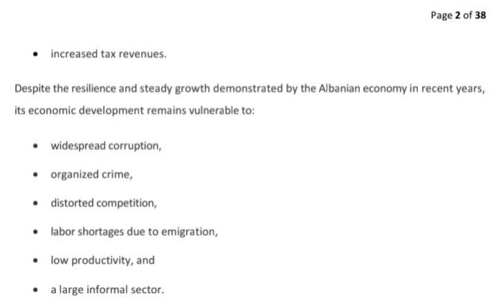 Qysh në faqen e dytë hartuesit rreshtojnë sabotuesit e zhvillimit të ekonomisë, që nisin me korrupsionin e shfrenuar, krimin e organizuar, konkurrencën e pandershme, etj.