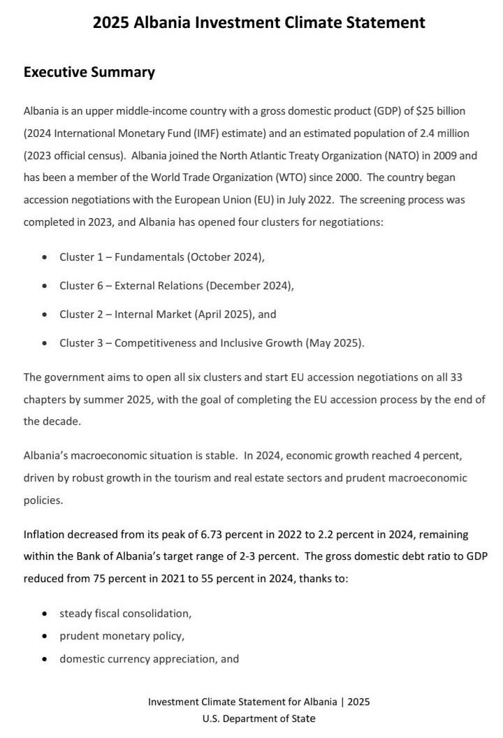 Raporti i sapopublikuar i Dep. USA të Shtetit për klimen e biznesit në Shqipëri paraqet një panoramë katastrofe.