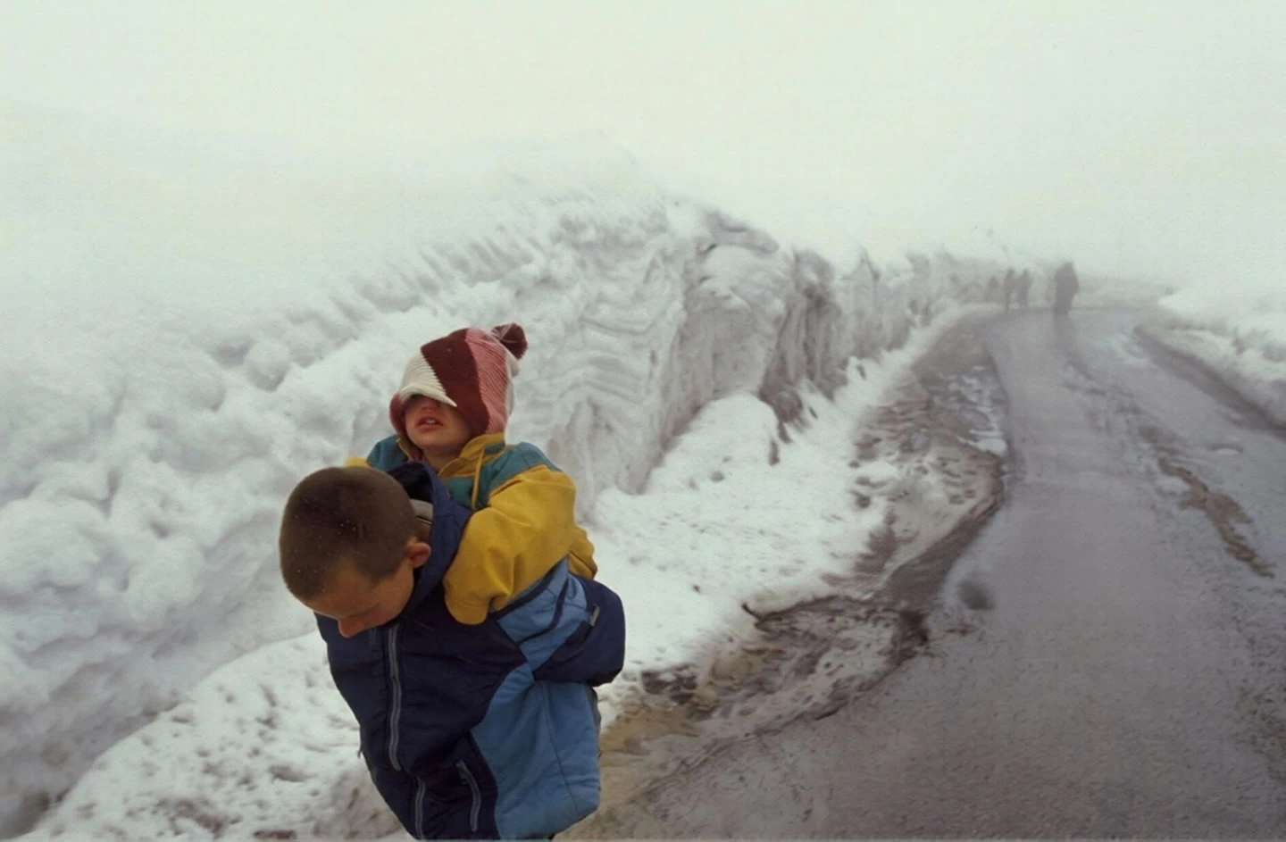Nuk e di kush eshte ky djale. Nuk di as moshen e tij. As fotografin qe e ka shkrepur kete foto. Di vetem qe i takon luftes se Kosoves dhe sipas faqes qe e ka postuar ky djale po mban ne kurriz vellain e tij te vogel ne rrugetimin per tu larguar nga Kosova ne lufte drejt Malit te Zi. Nuk e di nese prinderit i ka pasur gjalle apo ja kane masakruar serbet; nuk e di nga vinte, por 10 apo 11 vjecar ai ka marre ne shpine vellain e pamundur nga lodhja per ta cuar drejt vendit ku do ishte i sigurte. Instikti i vellait dhe prindit, por edhe pergjegjesia e nje femije qe lufta e ka bere burre. Nje foto qe te keput zemren. I lutem kujtdo qe ka info per foton apo personin te mi dergoje. Shpresoj qe te dy ta kene kapercyer ate kohe te veshtire e sot te jene zot ne atdheun e tyre…