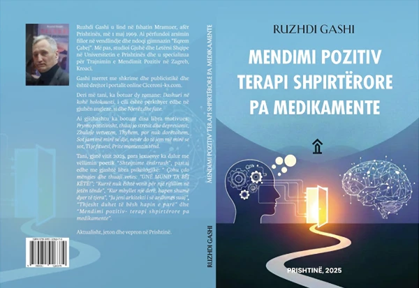 Libri “Mendimi pozitiv – terapi shpirtërore pa medikamente” i autorit Ruzhdi Gashi vjen si një udhërrëfyes i fuqishëm për shpirtin, një dritë e qetë dhe e ngrohtë në kohë të pasigurta, ku njeriu shpesh mbetet i vetmuar përballë sfidave të përditshme. Nëpërmjet një gjuhe të thjeshtë, të sinqertë dhe thellësisht njerëzore, autori na fton të zbulojmë veten, të shohim përtej dhimbjes dhe dyshimeve, e të mbajmë gjallë shpresën edhe në momentet më të errëta.