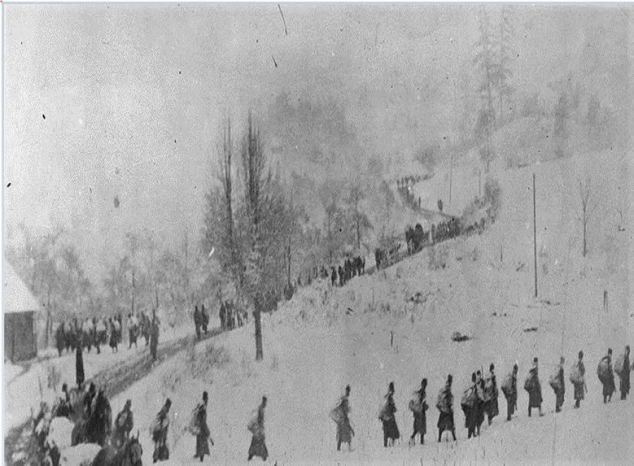 Dëbimi – nxjerrja e njerëzve me dhunë nga shtëpitë dhe banesat e tyre, ku para tytave të automatikëve urdhëroheshin që të vazhdojnë drejt stacionit të trenit ose të motorizuar, madje edhe në këmbë iknin drejt Shqipërisë, kufirit me Maqedoninë, por edhe drejt viseve me popullatë kryesisht shqiptare e boshnjake në Mal të Zi. Nga të katër anët e Kosovës kolona njerëzish në këmbë, me traktorë, me makina e me tren kishin marrë rrugën e mërgimit, të ndjekur e të persekutuar nga forcat serbe. Në mesin e tyre kishte edhe të sëmurë e të moshuar dhe të hendikepuar, gra shtatëzëna e fëmijë dhe foshnja të posalindura. Udhëtonin këta të ndjekur ose ecnin në këmbë kilometra e kilometra në kushte të vështira atmosferike e me përjetime e kujtime tronditëse për njerëz të vrarë e të pavarrosur, kufoma të hedhura anës rrugëve, djegie të tyre e të shtëpive të tyre. U sendërtuan në vepër thëniet e kriminelit Sheshel, i cili vazhdimisht theksonte se shqiptarët duhet të ndiqen përtej Bjeshkëve të Nemura, të vdekur ose të gjallë…