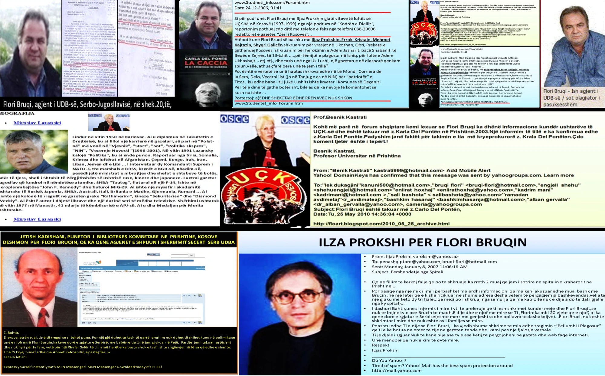 Dëshmi faktike nga intelektualë shqiptarë në Universitetin e Prishtines që kanë dëshmuar, dhe që e njihnin Flori Bruqin dhe aktivitetet e tij kriminale, dhe hijet e tij të errëta, se ai është i degraduar, për të njollosur të tjerët, me shpifje dhe gënjeshtra, në funksion të kombinimeve të propagandës së rreme të interesave serbo-jugosllave, dhe se ai është agjent i UDB-së, i rekrutuar në Bajtanicë të Beogradit, që kur ishte student i DIF-së në Universitetin e Beogradit, të cilin nuk e përfundoi kurrë në Beograd, por u rekrutua si agjent shqiptaro-serbo-jugosllav, dhe kishte biletë treni, udhëtim falas, për 5 vjet, nga sigurimi shtetëror i UDB-së, serbo-jugosllav nga Beogradi në Pejë dhe anasjelltas,