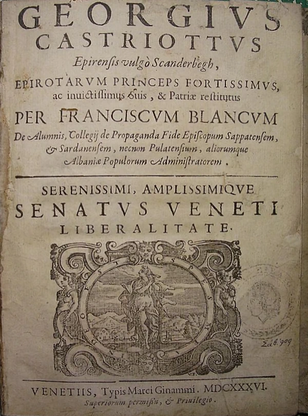 – Frang Bardhi: Apologji e Skënderbeut, botim, 1636