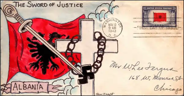 Shqipëria, e pushtuar fillimisht nga Italia fashiste dhe më pas nga Gjermania naziste, u gjend në një situatë dramatike, emegjithate rezistenca e saj antifashiste ishte heroike. Në këtë kontekst, mbështetja morale dhe politike e SHBA-së kishte një peshë të veçantë. Përmes fjalimeve të Roosevelt-it, përmes mesazheve të shtypit dhe radios, por edhe përmes artefakteve të përditshme ne dukje te pare me peshe te lehte, si dhe pullat postare apo zarfat filatelike, Amerika arriti te dërgonte një mesazh të qartë, qe populli shqiptar nuk ishte i vetëm në betejën kundër pushtuesit.