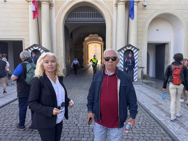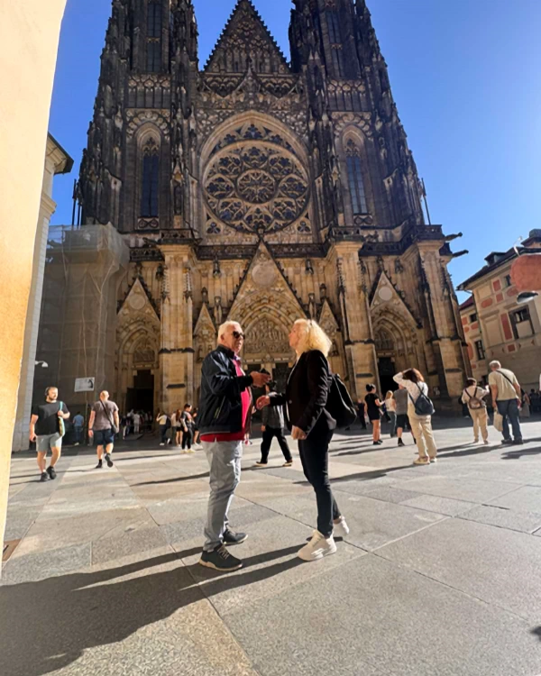 Tefik e Sabile Basha, në sheshin e Kalas së Pragës, shtator 2025