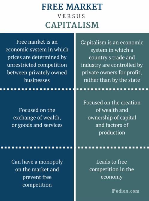 Kapitalizëm ka (dhe duhet të ketë), por treg të lirë jo. Treg të lirë ka pasur në kohën kur njerëzit ishin skllevër dhe kur kompanitë private mund të derdhnin feçet dhe naftën në det. Sipas liberal-libertarianëve, nëse nuk të pëlqen deti me feçe dhe naftë, mos u la. Fundja fare, kërkesë-ofertë është. Kjo është, kuptohet, idiotesi.