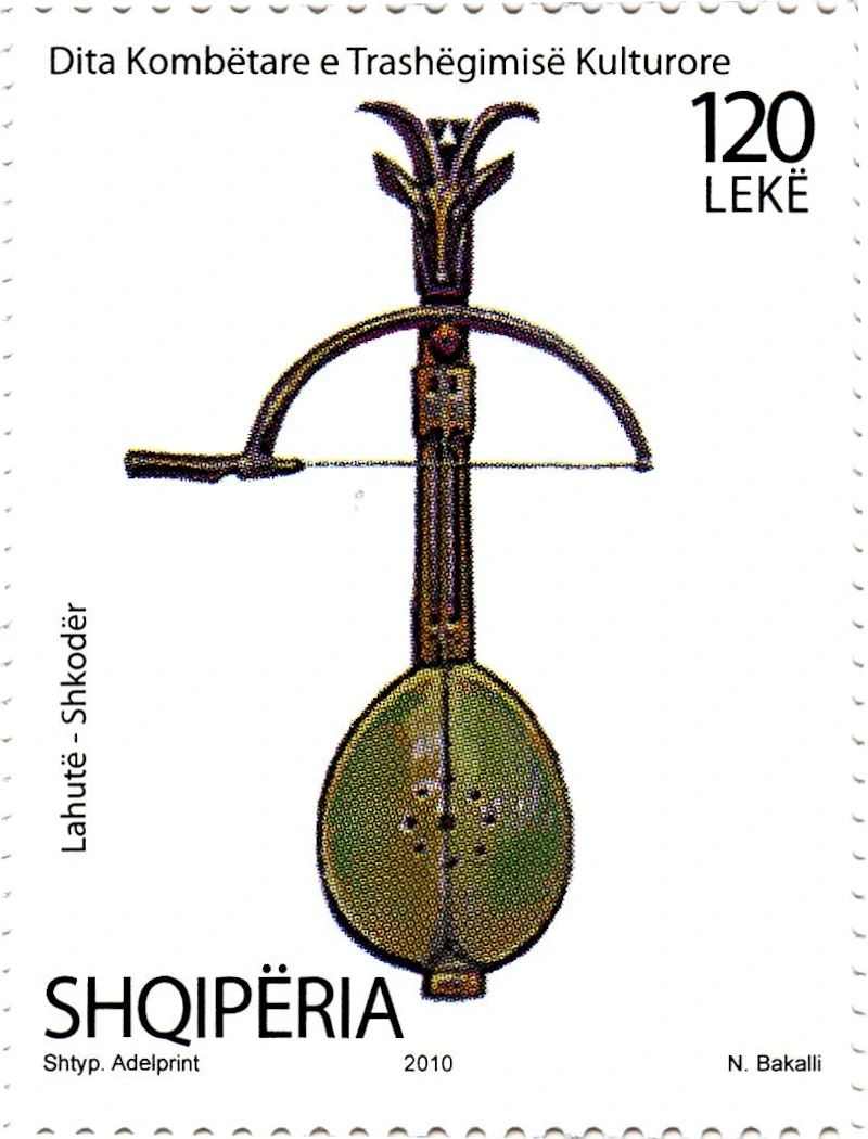 Emetuar më 31 mars 2011. Pulla me vlerë prej 120 lekësh e këtij emisioni paraqet lahutën shqiptare të Malësisë së Madhe mbi Shkodër me kokën e dhisë.