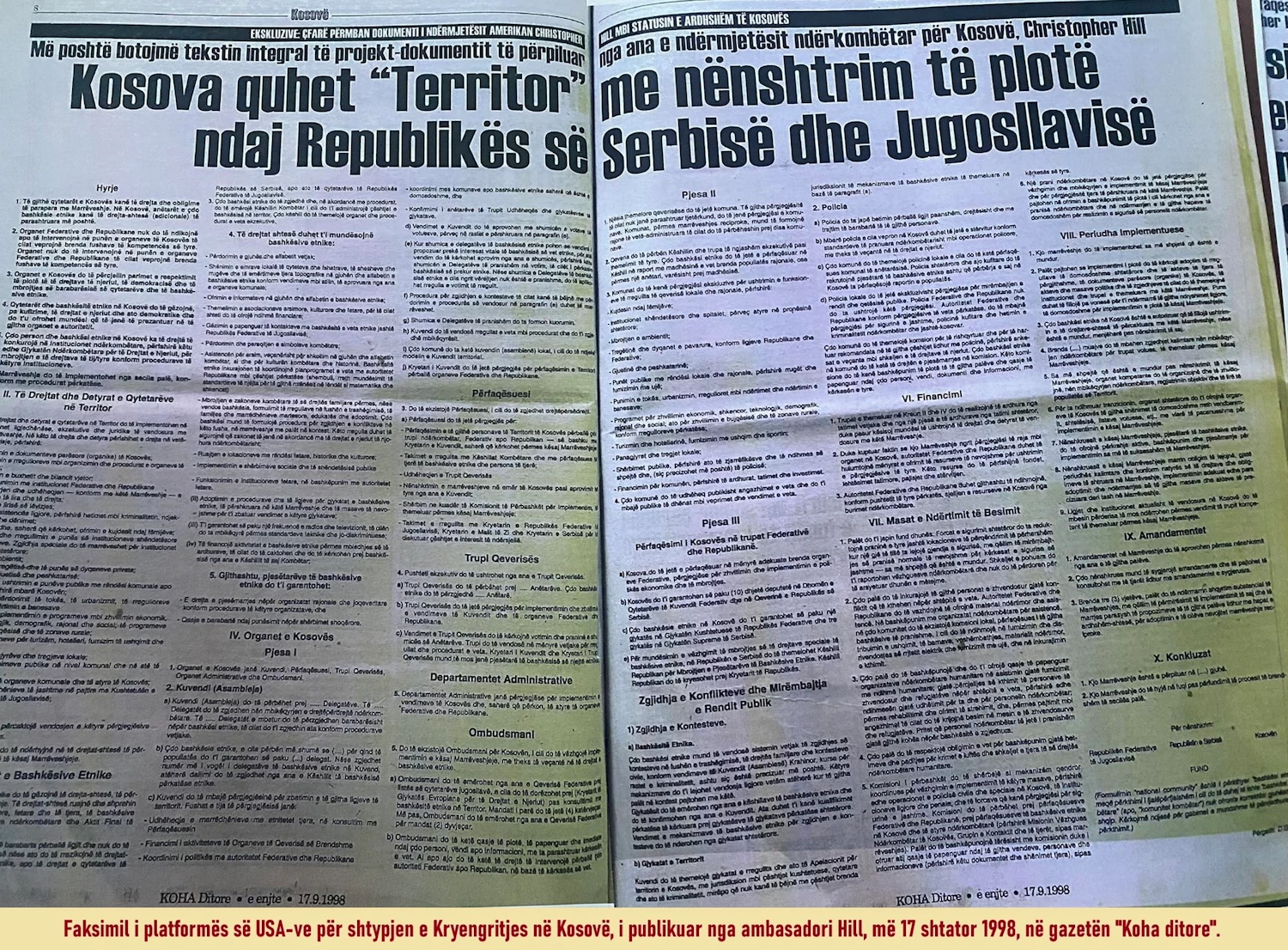 Si ilustrim po paraqes faksimilet e platformës amerikane, të publikuar edhe në shqip në Koha Ditore, më 17 shtator 1998.